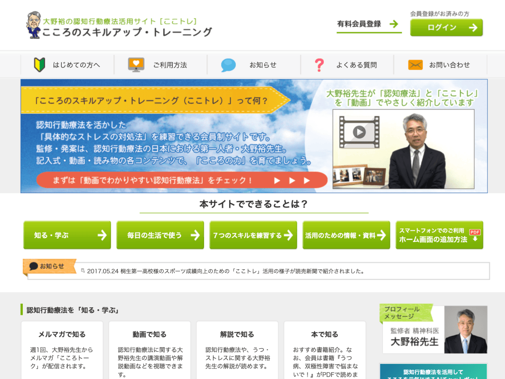 認知行動療法に関する情報や、自分の今の抑うつ度を知ることができるQIDS-Jテストがオンラインでうけられます。